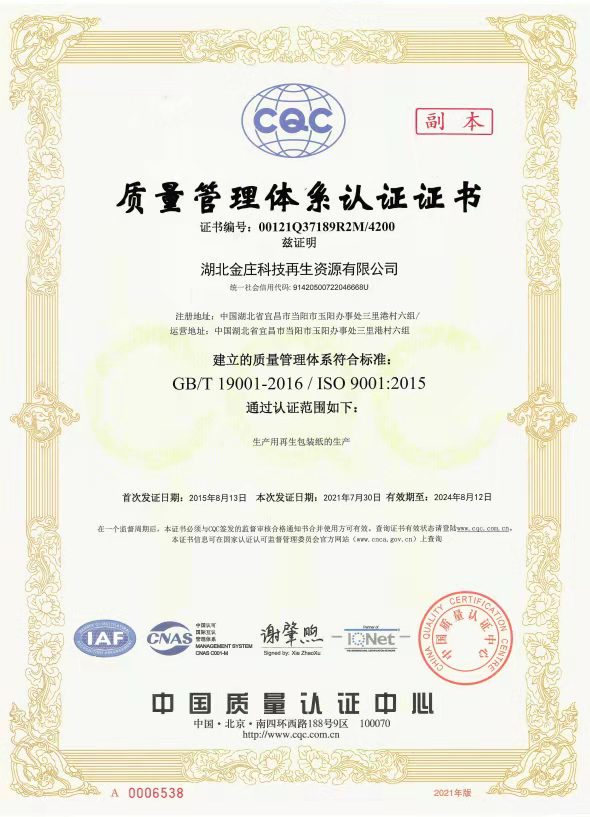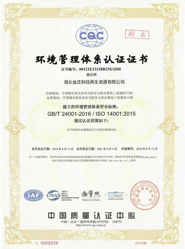 湖北金莊科技再生資源有限公司是以生產(chǎn)再生包裝紙和為工業(yè)園區(qū)集中供熱的資源綜合利用加工服務(wù)型企業(yè)。公司位于當(dāng)陽市金橋工業(yè)園,成立于2000年,注冊資本15486.72萬元,占地面積近400畝,現(xiàn)有員工500余人。 自成立以來,公司始終堅持“誠信、創(chuàng)新、共贏”的經(jīng)營理念,努力踐行“資源再生綜合利用,堅持綠色能源可持續(xù)發(fā)展,以為社會提供綠色可持續(xù)穩(wěn)定適用的產(chǎn)品為己任”的經(jīng)營方針。
